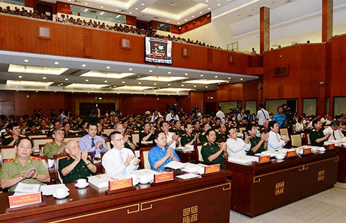 Đồng chí Nguyễn Minh Triết, nguyên Ủy viên Bộ Chính trị, nguyên Chủ tịch nước cùng các đồng chí Ủy viên Bộ Chính trị: Đinh Thế Huynh, Bí thư Trung ương Đảng, Trưởng ban Tuyên giáo Trung ương; Đại tướng Trần Đại Quang, Bộ trưởng Bộ Công an; Lê Thanh Hải, Bí thư Thành ủy TP Hồ Chí Minh và Thượng tướng Ngô Xuân Lịch, Bí thư Trung ương Đảng, Chủ nhiệm Tổng cục Chính trị đến dự. Tham dự còn có các đồng chí trong Thường vụ Quân ủy Trung ương: Thượng tướng Đỗ Bá Tỵ, Ủy viên Trung ương Đảng, Tổng tham mưu trưởng, Thứ trưởng Bộ Quốc phòng; Thượng tướng Nguyễn Thành Cung, Ủy viên Trung ương Đảng, Thứ trưởng Bộ Quốc phòng… cùng đại biểu tướng lĩnh, nhân chứng lịch sử, nhà khoa học, đại diện nhiều bộ, ngành, cơ quan, đơn vị, địa phương và đông đảo cán bộ, chiến sĩ LLVT, đoàn viên thanh niên tham dự.