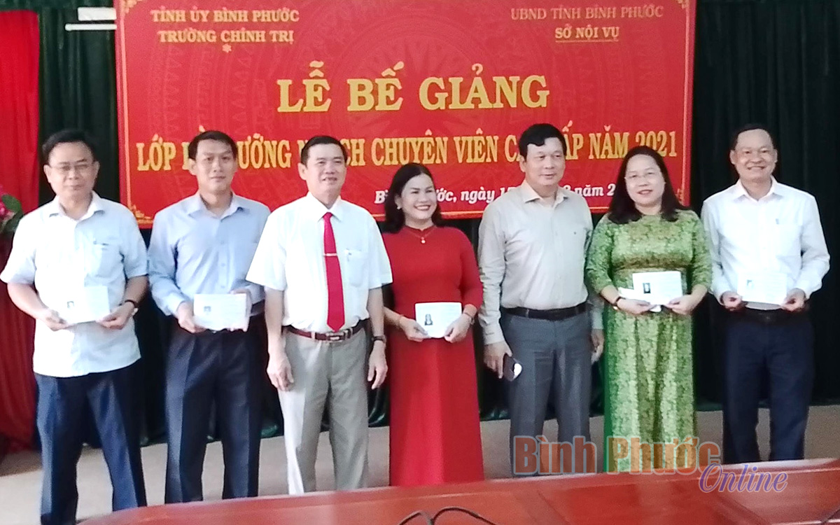 Thời gian qua, công tác chính sách cán bộ của tỉnh có nhiều đổi mới và tiến bộ. Trong ảnh: Bế giảng lớp bồi dưỡng ngạch chuyên viên cao cấp năm 2021 mở tại Bình Phước - Ảnh: Lâm hùng