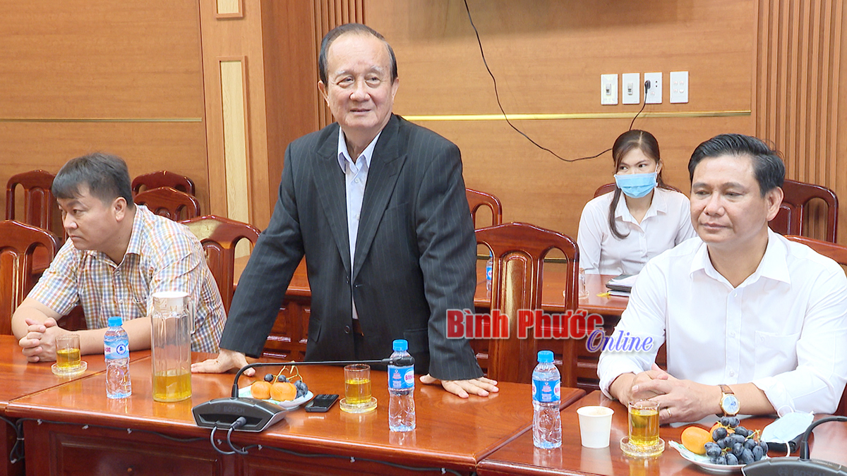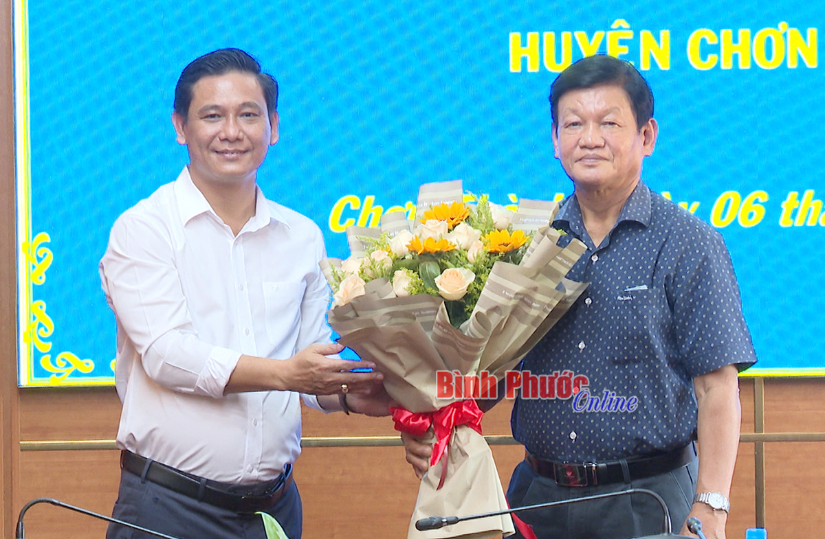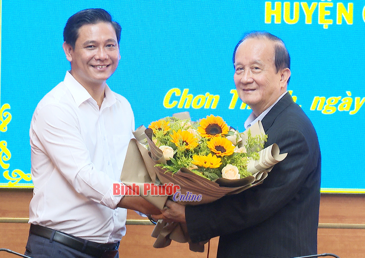 Lãnh đạo huyện Chơn Thành tặng hoa tri ân nguyên Bí thư Tỉnh ủy Bình Phước Nguyễn Hữu Luật