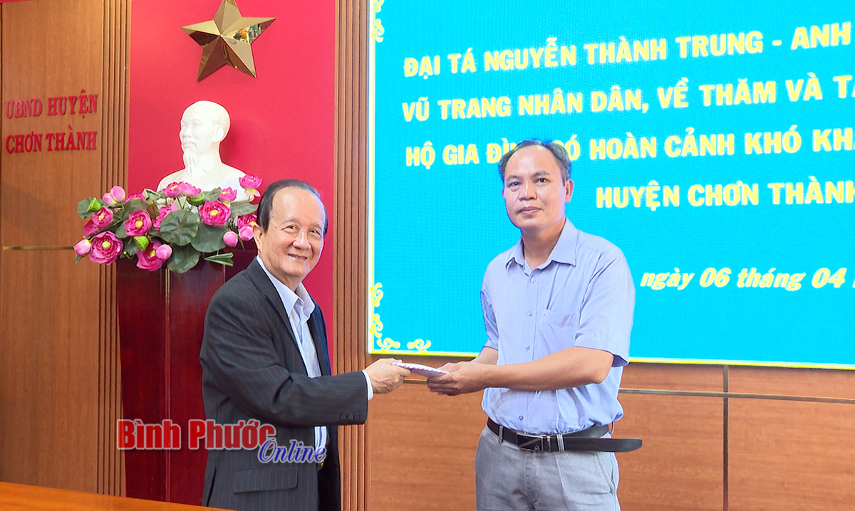 Dịp này, thông qua Ủy ban MTTQ Việt Nam huyện, Đại tá Nguyễn Thành Trung, Anh hùng lực lượng vũ trang nhân dân đã trao tặng 50 triệu đồng cho các hộ nghèo trên địa bàn huyện Hớn Quản.