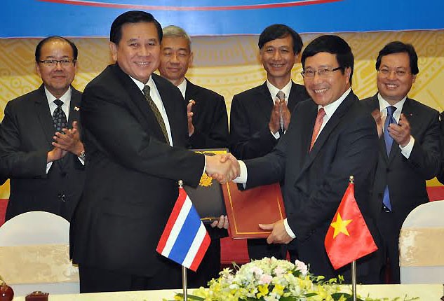 Về tình hình Biển Đông, hai bên nhất trí phối hợp chặt chẽ nhằm thúc đẩy giải quyết các tranh chấp ở Biển Đông bằng biện pháp hòa bình, tôn trọng luật pháp quốc tế, trong đó có Công ước của LHQ về Luật biển 1982 (UNCLOS); thực hiện đầy đủ và hiệu quả Tuyên bố về cách ứng xử của các bên ở Biển Đông (DOC); Thái Lan, với tư cách là nước điều phối quan hệ đối thoại ASEAN-Trung Quốc, sẽ tích cực phối hợp với các bên liên quan thúc đẩy tham vấn thực chất về Bộ Quy tắc ứng xử trên Biển Đông (COC).