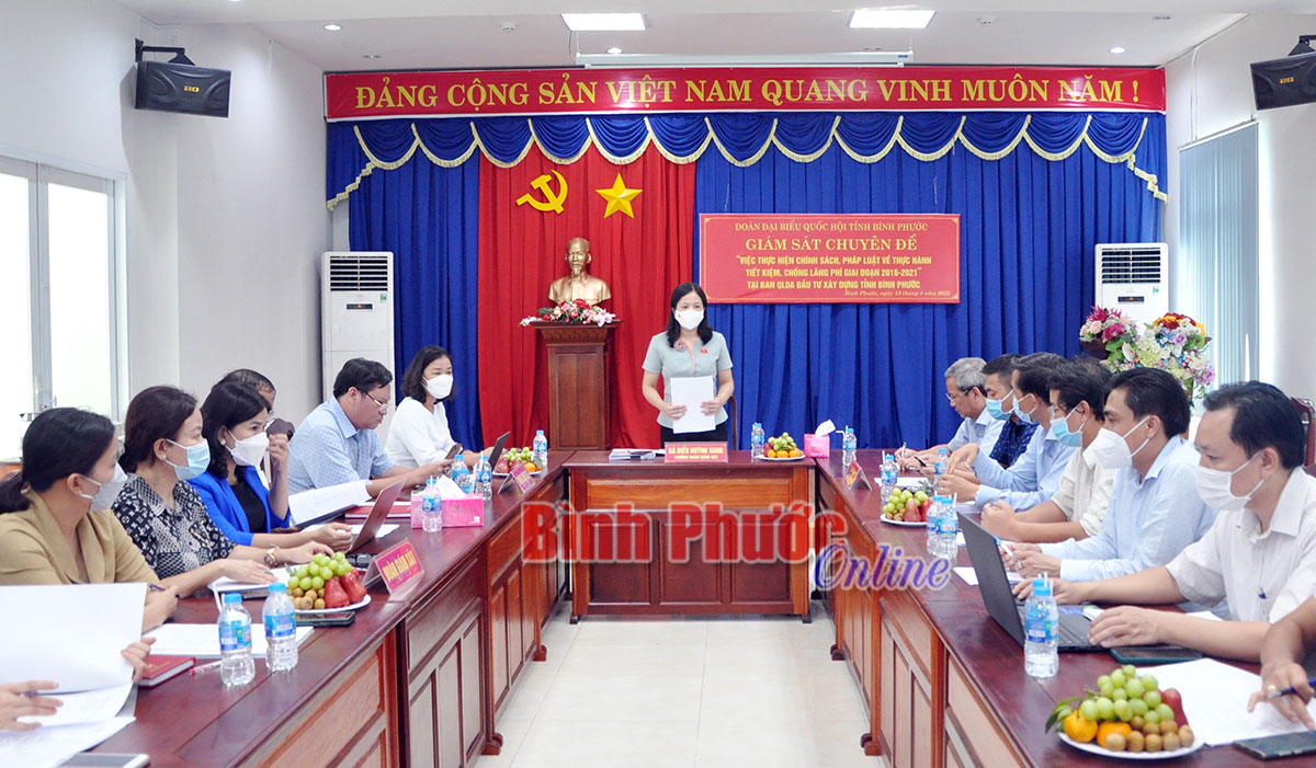 Báo cáo tại buổi làm việc, đại diện Ban quản lý dự án đầu tư xây dựng tỉnh cho biết: Thời gian qua, việc thực hiện chính sách, pháp luật về thực hành tiết kiệm, chống lãng phí của cán bộ, công chức, viên chức, người lao động của ban đã được nâng cao cả về nhận thức và hành động. Nhiều năm liền tại ban không xảy ra hành vi tiêu cực trong đấu thầu, đảm bảo cạnh tranh công bằng, minh bạch; hồ sơ đấu thầu được đăng tải, công khai trên hệ thống mạng internet kịp thời, đầy đủ.