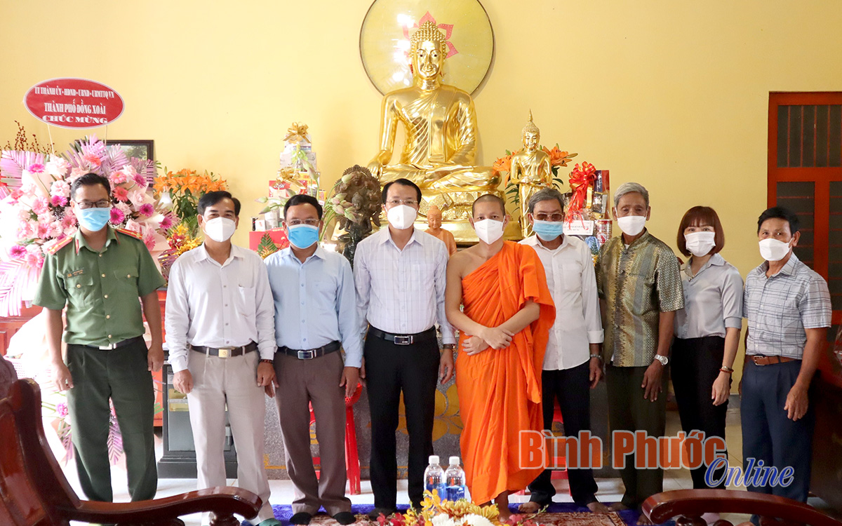 Lãnh đạo Ban Dân tộc tỉnh và thành phố Đồng Xoài chúc mừng tết Chôl Chnăm Thmây tại chùa Sirivansa