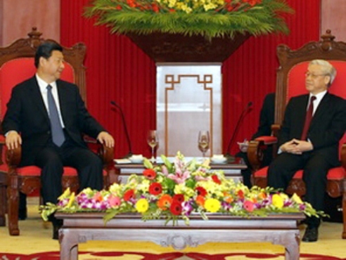 Trong bầu không khí cởi mở, thẳng thắn, chân thành, hai Tổng Bí thư đã trao đổi thông tin về tình hình hai Đảng, hai nước và các vấn đề liên quan đến quan hệ hai Đảng, hai nước. Tổng Bí thư, Chủ tịch nước Tập Cận Bình đánh giá cao những thành tựu to lớn, có ý nghĩa lịch sử mà Việt Nam đã đạt được sau gần 30 năm đổi mới; tin tưởng rằng, dưới sự lãnh đạo của Đảng Cộng sản Việt Nam, mà đứng đầu là Tổng Bí thư Nguyễn Phú Trọng, nhân dân Việt Nam sẽ tiếp tục thu được những thành tựu to lớn hơn nữa, đẩy mạnh toàn diện công cuộc đổi mới, phát triển nhanh, bền vững, hoàn thành mục tiêu cơ bản trở thành một nước công nghiệp theo hướng hiện đại.