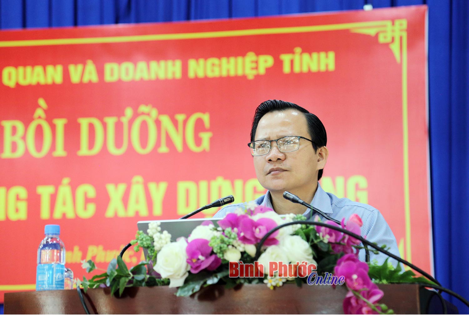 Lớp bồi dưỡng được truyền hình trực tuyến từ trụ sở Đảng bộ khối Cơ quan và Doanh nghiệp tỉnh đến Sở Thông tin và Truyền thông và điểm cầu VNPT Bình Phước, với sự tham gia của 256 học viên là bí thư, phó bí thư, cấp ủy viên và ủy viên Ủy ban Kiểm tra cấp cơ sở đến từ các cơ sở đảng trực thuộc.