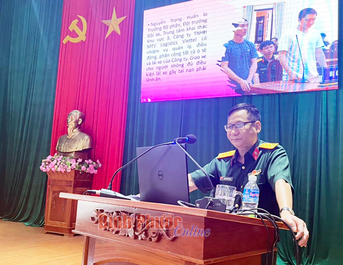 Thượng tá Nguyễn Hồng Phong, Thẩm phán Tòa án Quân khu 7, Báo cáo viên pháp luật của Bộ Quốc phòng truyền đạt những thông tin về kết quả xét xử các vụ án trong LLVT quân khu và bài học kinh nghiệm