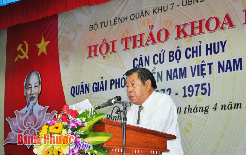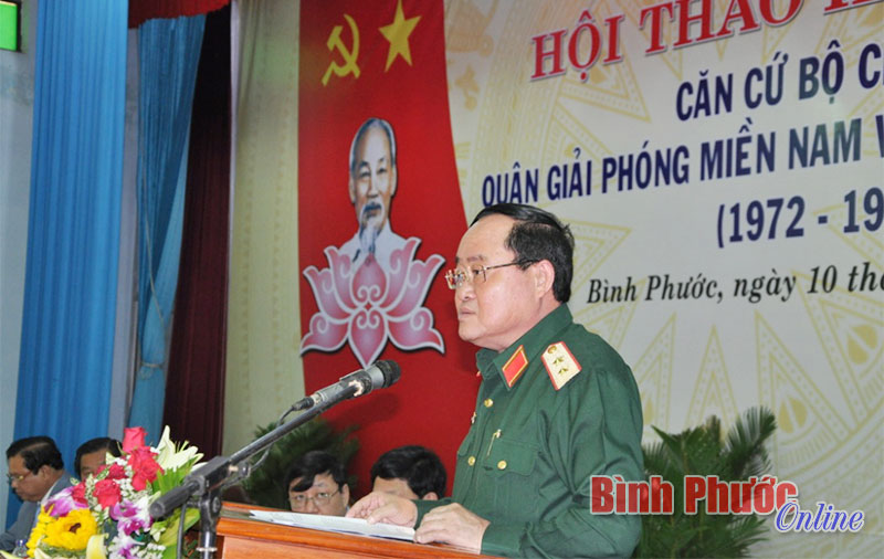 | Trung tướng Trần Đơn, Tư lệnh Quân khu 7 cho biết: “Hội thảo nhằm cung cấp những luận cứ khoa học cho việc thu thập tài liệu, thiết lập hồ sơ trình Thủ tướng Chính phủ phê duyệt di tích Căn cứ Bộ chỉ huy các lực lượng vũ trang giải phóng miền Nam Việt Nam là di tích quốc gia đặc biệt. Từ đó dự báo xu hướng phát triển, giúp các ngành, các cấp có những lựa chọn phù hợp, khoa học để tôn tạo, phát huy giá trị di tích trong tương lai”. |