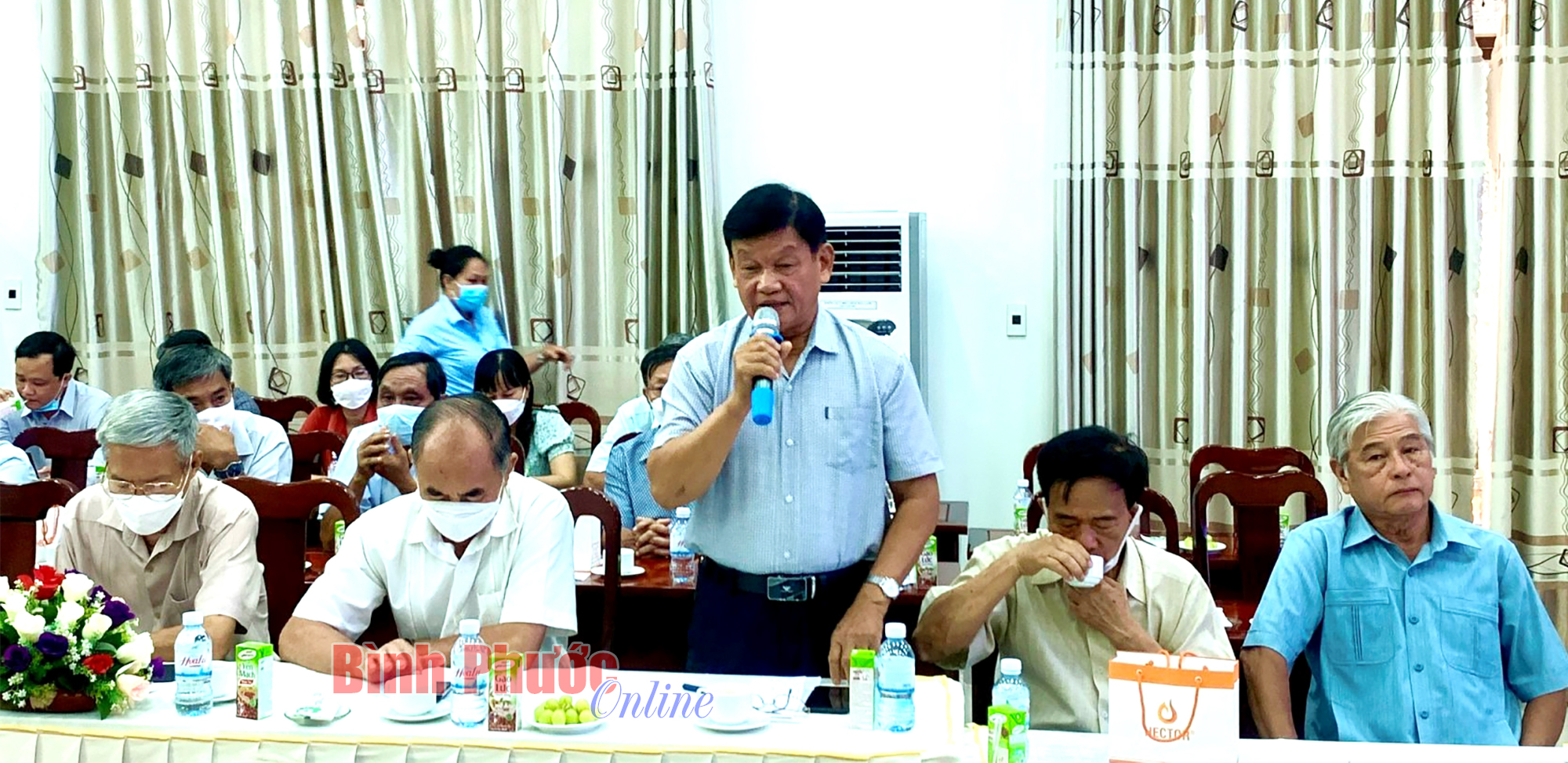 Nguyên Ủy viên Trung ương Đảng, nguyên Bí thư Tỉnh ủy, nguyên Chủ tịch HĐND tỉnh Bình Phước (nguyên Bí thư Huyện ủy Đồng Phú, tỉnh Sông Bé cũ) Nguyễn Hữu Luật phát biểu tại buổi họp mặt