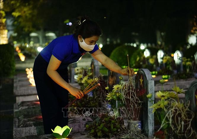 Đoàn viên thanh niên thắp những ngọn nến lung linh lên các phần mộ liệt sỹ.