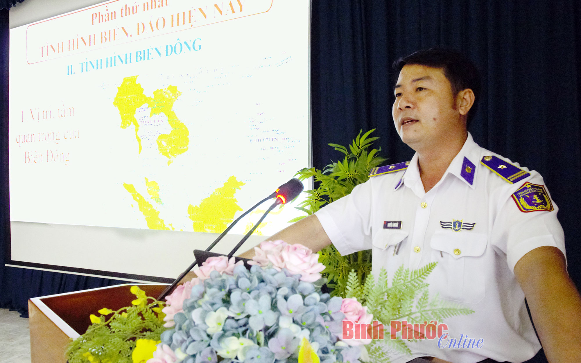 Báo cáo viên Bộ tư lệnh Vùng cảnh sát biển 3 triển khai các nội dung tuyên truyền