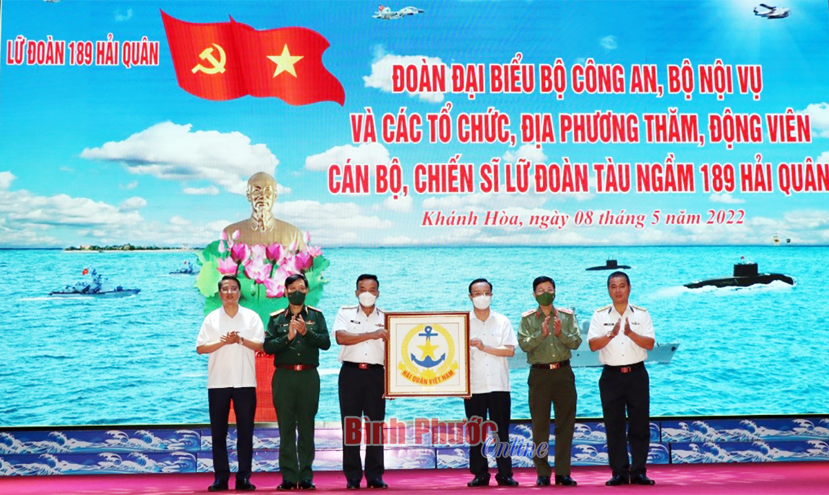 Cùng ngày, đoàn công tác đã tới thăm Lữ đoàn tàu ngầm 189 Hải quân. Lữ đoàn được thành lập ngày 20-6-2011, chính thức hoạt động từ năm 2013. Trong quá trình xây dựng và phát triển, lữ đoàn luôn nhận được sự quan tâm đặc biệt của Đảng, Nhà nước, Quân ủy Trung ương - Bộ Quốc phòng, Bộ Tư lệnh Quân chủng Hải quân và đồng bào nhân dân cả nước. Lữ đoàn luôn phát huy tinh thần chủ động, đoàn kết, thống nhất, quyết tâm hoàn thành xuất sắc mọi nhiệm vụ được giao và được tặng nhiều phần thưởng cao quý. Đặc biệt là năm 2021 lữ đoàn được Đảng, Nhà nước trao tặng Huân chương Bảo vệ Tổ quốc hạng Nhất, góp phần tô thắm truyền thống của lữ đoàn là “Đoàn kết, kỷ luật, bí mật, quyến thắng".