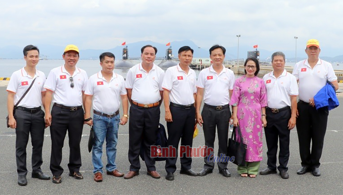 Đoàn công tỉnh Bình Phước thăm quần đảo Trường Sa chụp hình lưu niệm tại đơn vị Lữ đoàn 189