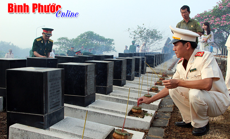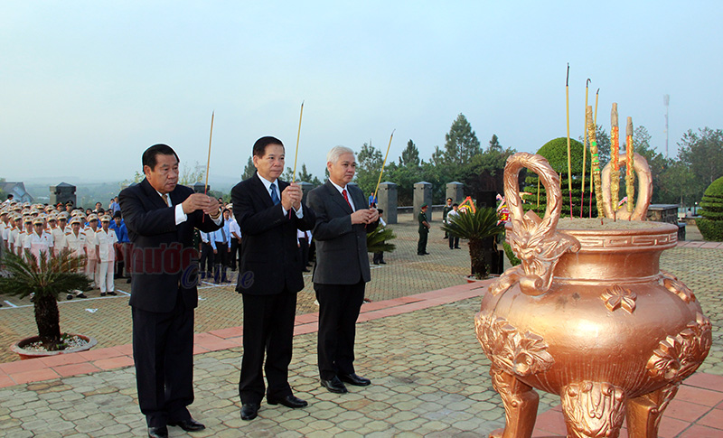 Trước đó, vào lúc 6h sáng 24-4, nguyên Chủ tịch nước Nguyễn Minh Triết, thượng tướng Ngô Xuân Lịch cùng đoàn đại biểu của tỉnh và đông đảo cán bộ, đoàn thanh niên, nhân dân trong vùng đã đến viếng nghĩa trang liệt sỹ tỉnh.