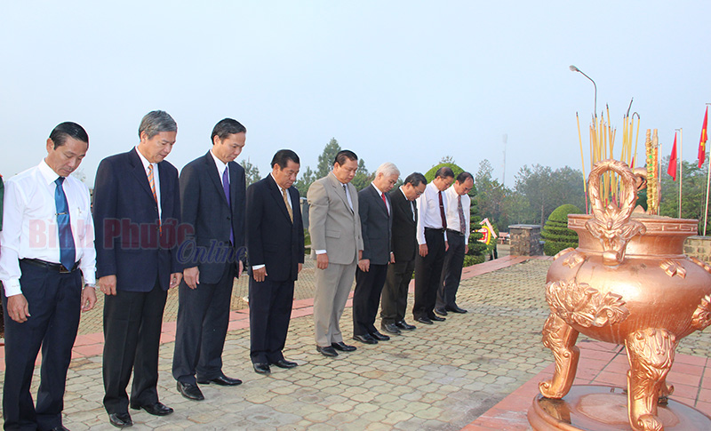 Các đồng chí trong Ban Thường vụ tỉnh ủy và các đoàn đại biểu viếng nghĩa trang liệt sỹ tỉnh