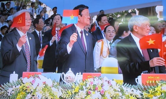 Thay mặt Đảng, Nhà nước, Chính phủ, Thủ tướng Chính thủ Nguyễn Tấn Dũng đọc diễn văn ôn lại truyền thống đấu tranh cách mạng của dân tộc ta trong hai cuộc đấu tranh trường kỳ giải phóng dân tộc, thống nhất đất nước.