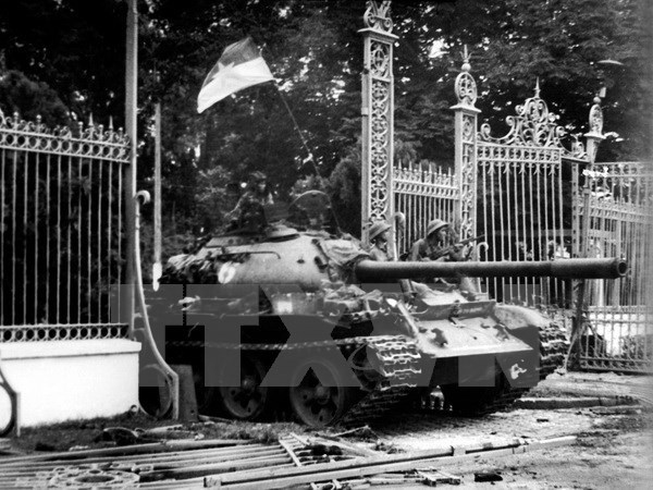 Xe tăng Quân Giải phóng tiến vào Dinh Độc lập trưa ngày 30-4-1975".
