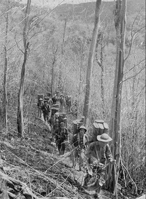 Dân công đưa hàng luồn sâu vào Chiến trường Tây Nguyên. Ảnh tư liệu.