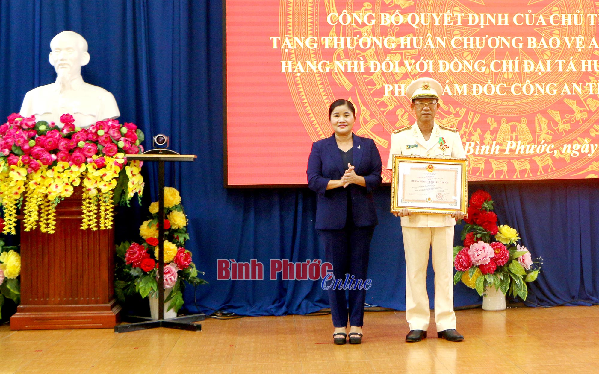 Thừa ủy nhiệm của Chủ tịch nước, Phó bí thư Tỉnh ủy, Chủ tịch UBND tỉnh Trần Tuệ Hiền đã gắn huân chương và trao bằng danh dự Huân chương Bảo vệ Tổ quốc hạng Nhì cho Đại tá Huỳnh Văn Sách, Phó giám đốc Công an tỉnh.