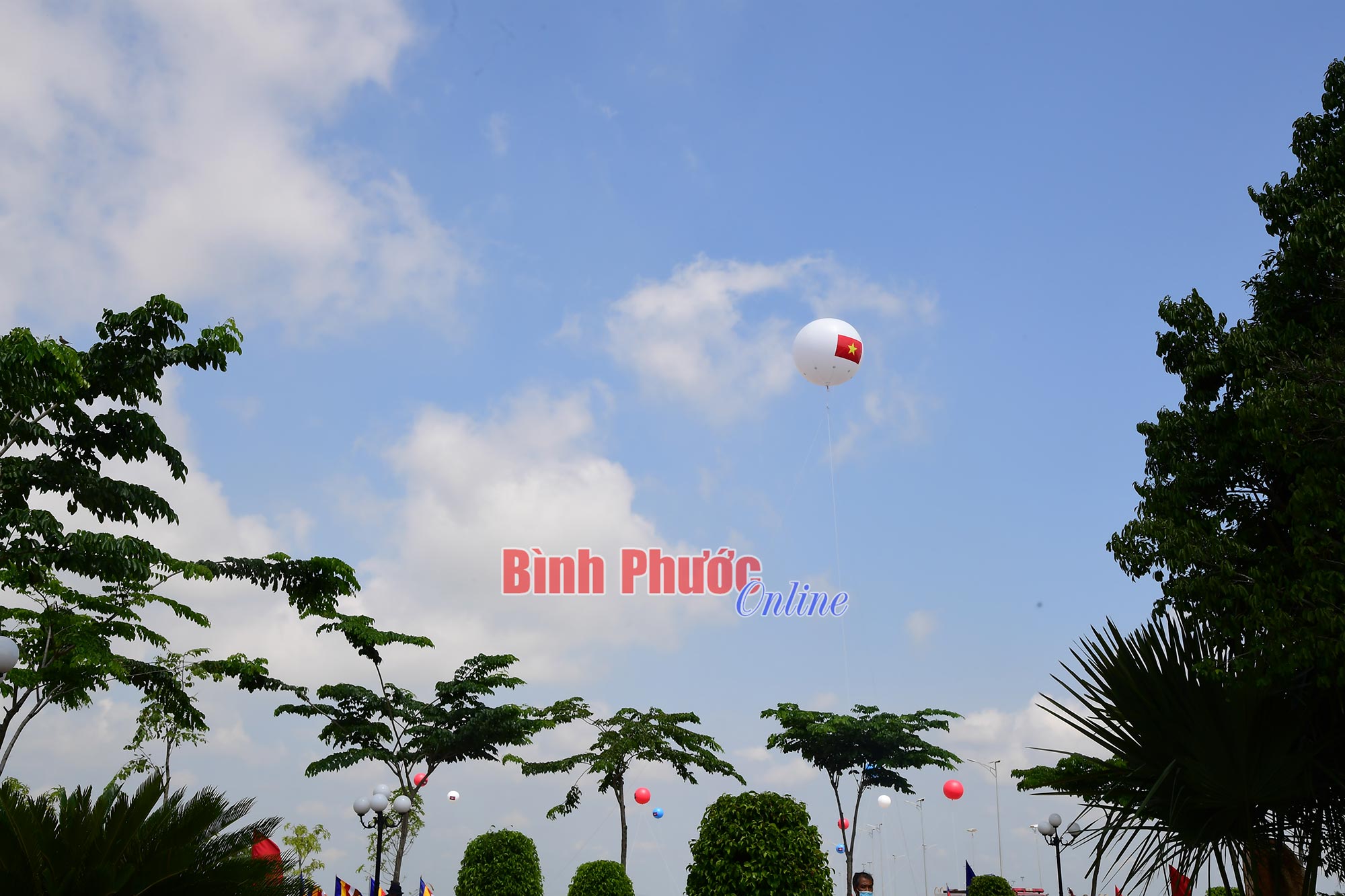 Bên cạnh cắm cờ dọc trục đường chính, Campuchia cũng đã bố trí những quả bóng hơi có in hình quốc kỳ của 2 nước Việt Nam - Campuchia bay trên bầu trời