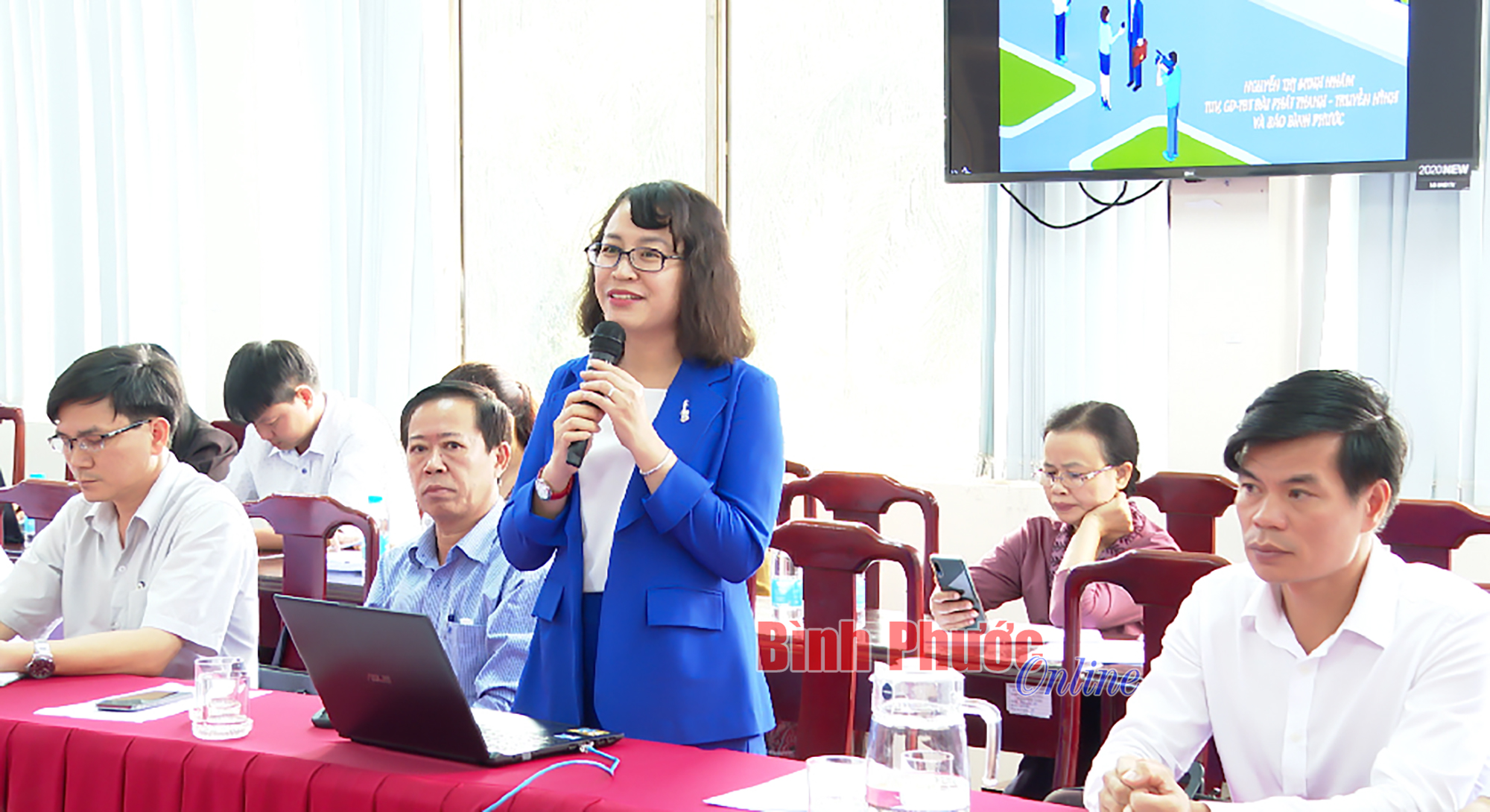 Tỉnh ủy viên, Giám đốc - Tổng biên tập Đài Phát thanh - Truyền hình và Báo Bình Phước Nguyễn Thị Minh Nhâm phát biểu tại hội nghị