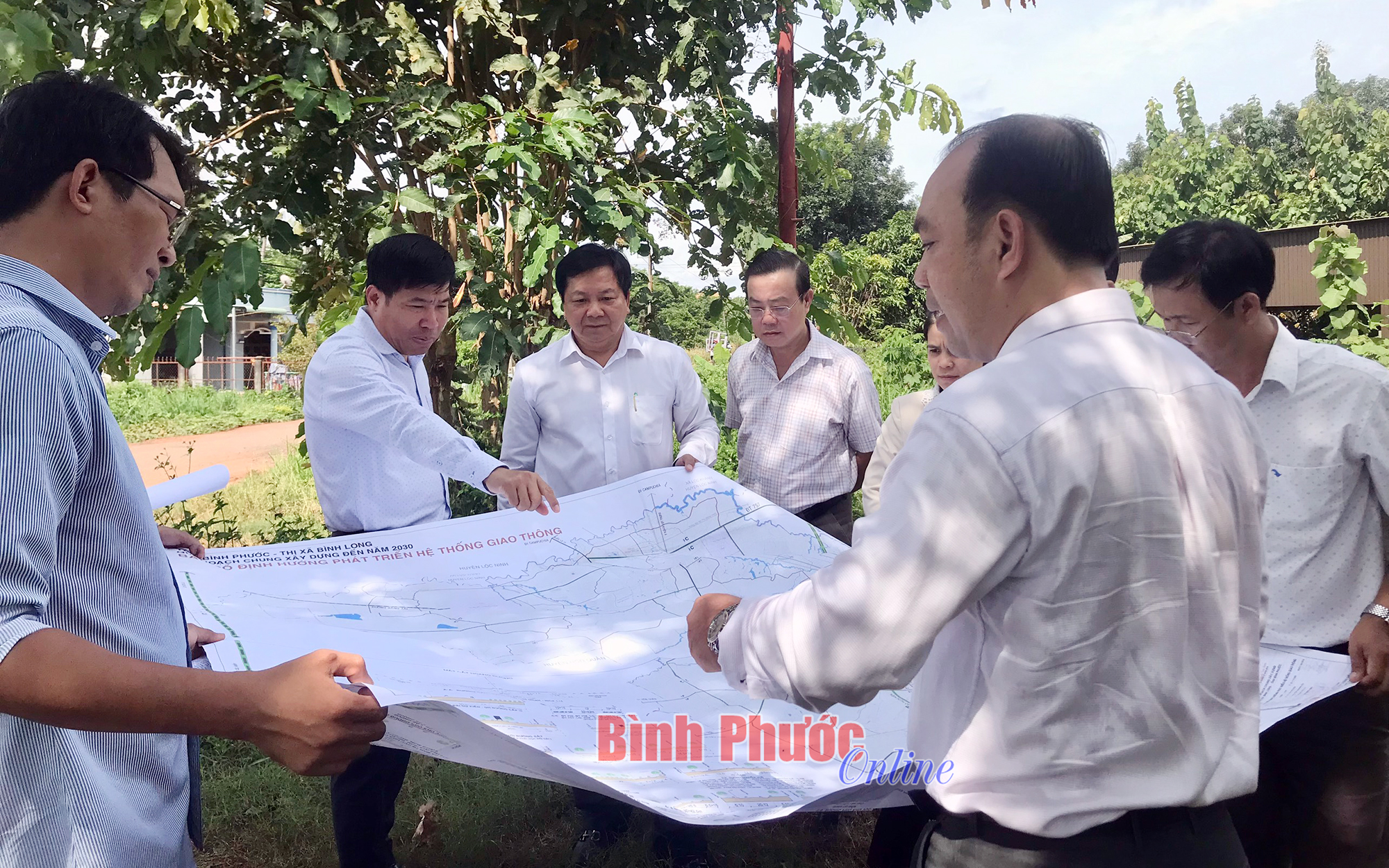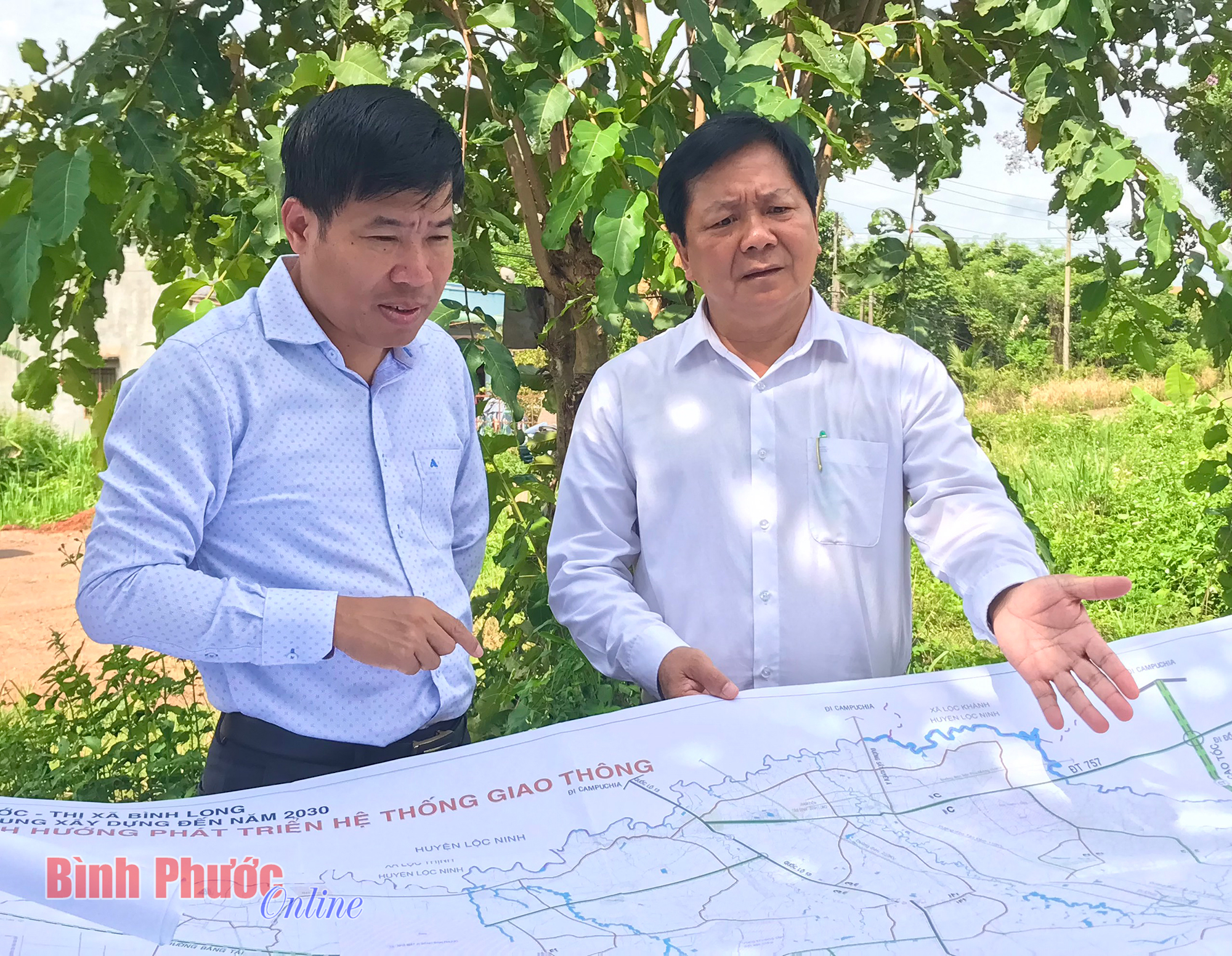 BPO - Trong khuôn khổ buổi làm việc với lãnh đạo chủ chốt thị xã Bình Long về kết quả thực hiện nhiệm vụ phát triển kinh tế - xã hội 6 tháng đầu năm và triển khai phương hướng, nhiệm vụ 6 tháng cuối năm 2022 diễn ra chiều nay 28-6, Ủy viên Trung ương Đảng, Bí thư Tỉnh ủy Nguyễn Mạnh Cường cùng đoàn công tác của tỉnh đã đi thị sát thực tế các dự án giao thông kết nối vùng, nội vùng tại xã Thanh Lương, thị xã Bình Long. Cùng đi có Tỉnh ủy viên, Phó chủ tịch UBND tỉnh Trần Văn Mi và lãnh đạo Sở Giao thông vận tải.