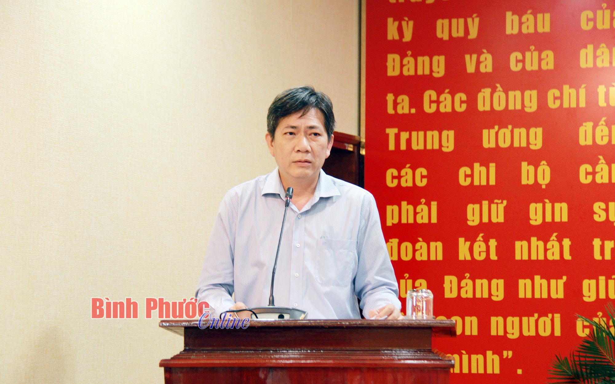 Tỉnh ủy viên, Bí thư Thị ủy, Chủ tịch UBND thị xã Phước Long Phạm Thụy Luân phát biểu về tình hình thực hiện các chỉ tiêu kinh tế - xã hội 6 tháng đầu năm của thị xã. Bí thư Thị ủy, Chủ tịch UBND thị xã Phạm Thụy Luân cũng thông tin thêm về tình trạng thiếu thuốc, vật tư y tế tại địa phương, tình trạng đấu thầu thuốc chậm. Bên cạnh đó là những khó khăn trong phát triển đảng viên tại khu dân cư.