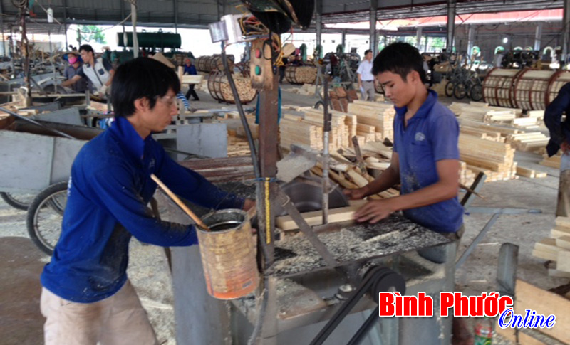 Công nhân trong phân xưởng xẻ gỗ tại Công ty TNHH Phúc Thịnh - một trong những điển hình tiêu biểu về nộp thuế ở Đồng Xoài
