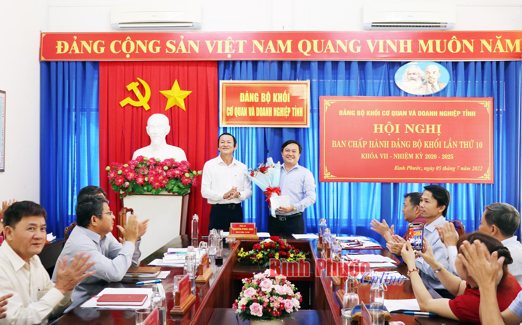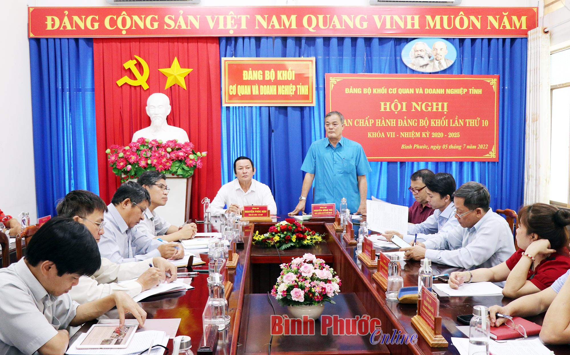 Tại hội nghị, các Ủy viên Ban Thường vụ Đảng ủy khối đã được quán triệt Kết luận số 35-KL/TW, ngày 5-5-2022 của Bộ Chính trị về danh mục chức danh lãnh đạo và tương đương của hệ thống chính trị từ Trung ương đến cơ sở theo Công văn số 558-CV/TU ngày 5-6-2022 của Tỉnh ủy Bình Phước; triển khai thực hiện thông báo Kết luận số 12-KL/TW ngày 6-4-2022 của Bộ Chính trị về tiếp tục tăng cường sự lãnh đạo của Đảng đối với công tác phòng, chống tham nhũng, tiêu cực.