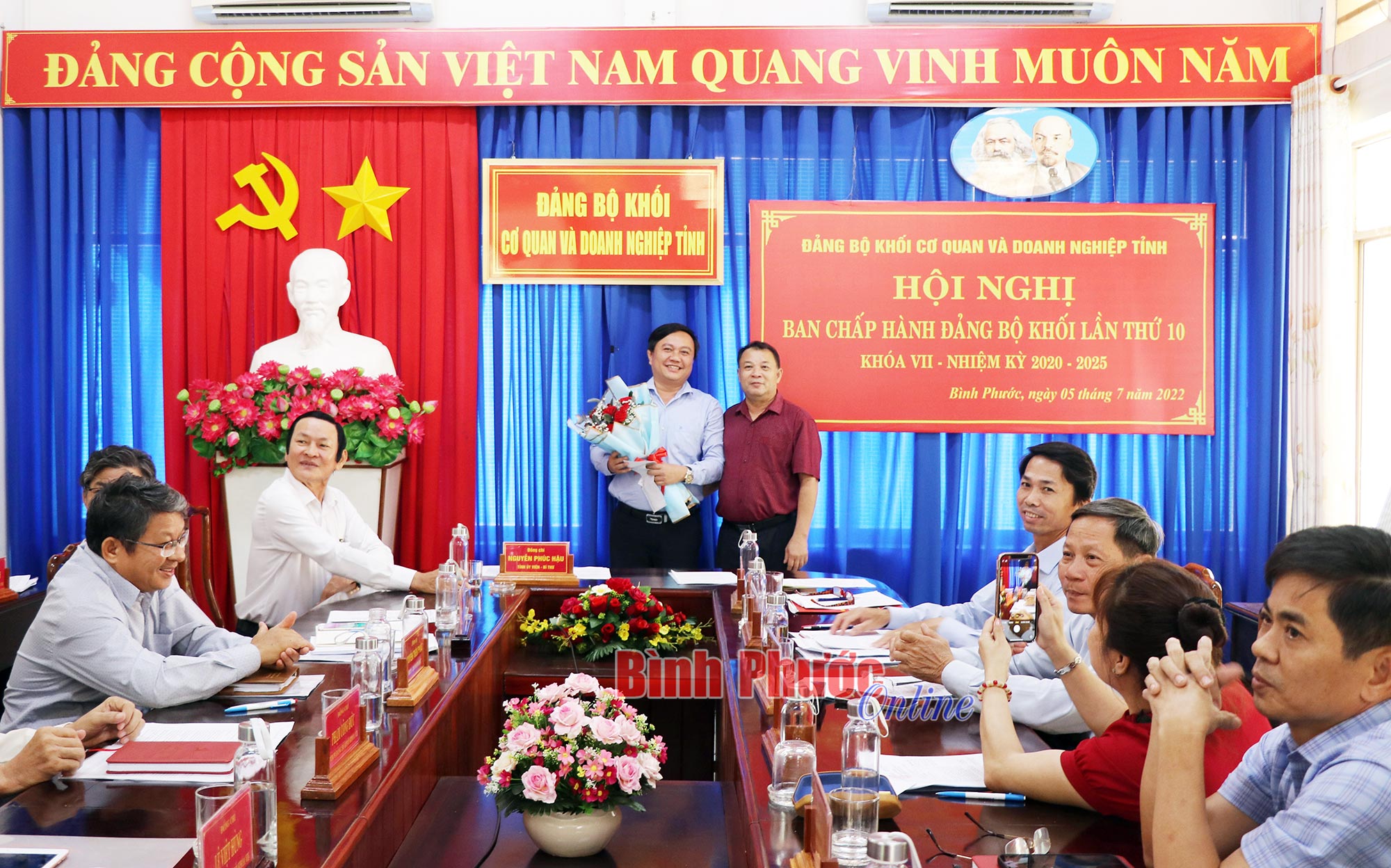Lãnh đạo Đảng ủy khối Cơ quan và Doanh nghiệp tỉnh tặng hoa, tri ân Đảng ủy viên, Bí thư Đoàn khối Cơ quan và Doanh nghiệp tỉnh Nguyễn Công Đồng