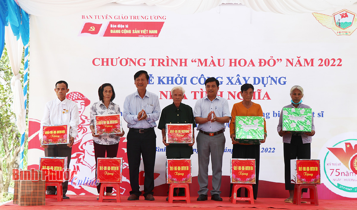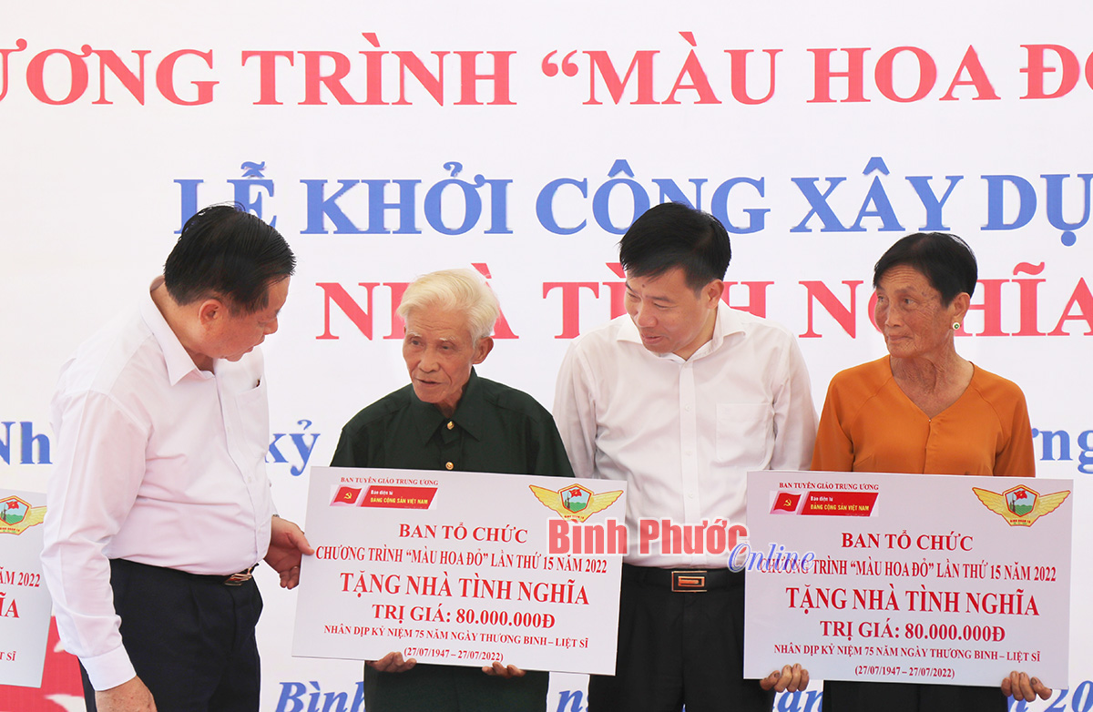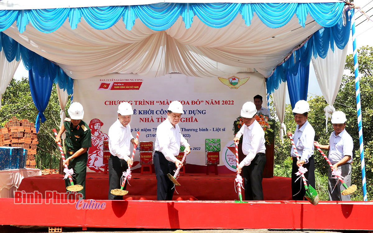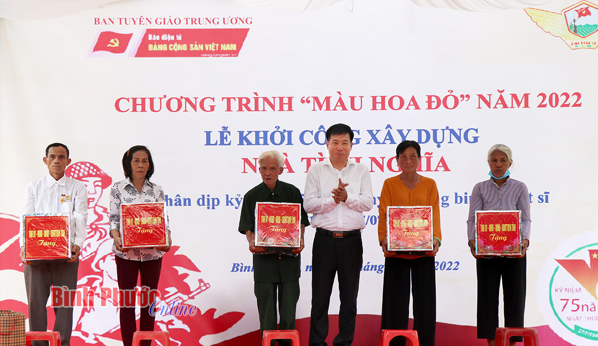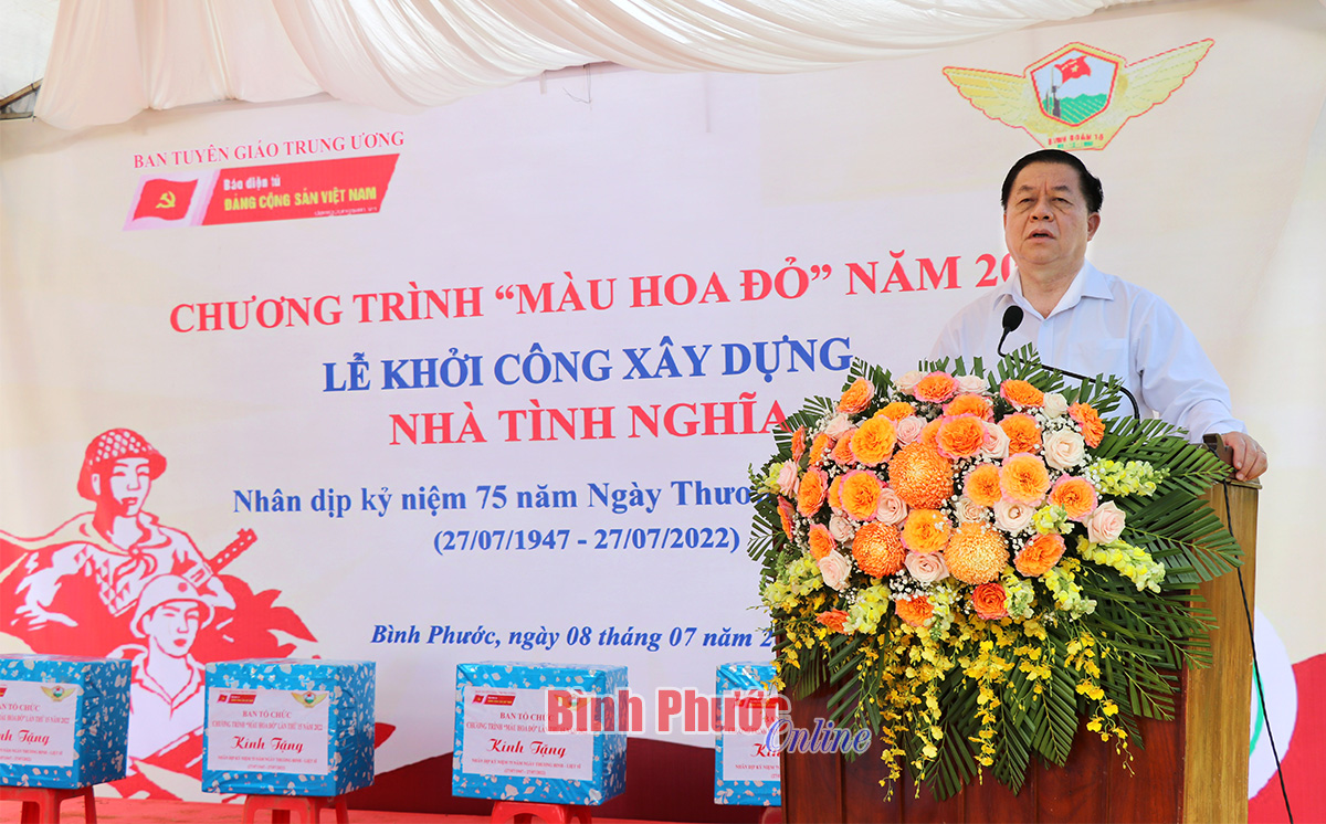 Phát biểu tại lễ khởi công, Bí thư Trung ương Đảng, Trưởng ban Tuyên giáo Trung ương Nguyễn Trọng Nghĩa cho biết: Trong những ngày này, Đảng, Chính phủ và các địa phương trong cả nước triển khai nhiều hoat động đền ơn đáp nghĩa. Ban Tuyên giáo Trung ương phối hợp với Báo điện tử Đảng Cộng sản Việt Nam, Binh đoàn 16 (Bộ Quốc phòng) tổ chức chương trình “Màu hoa đỏ” năm 2022, nhằm tri ân các anh hùng liệt sĩ; tri ân và tôn vinh các gia đình chính sách, người có công, thương, bệnh binh.