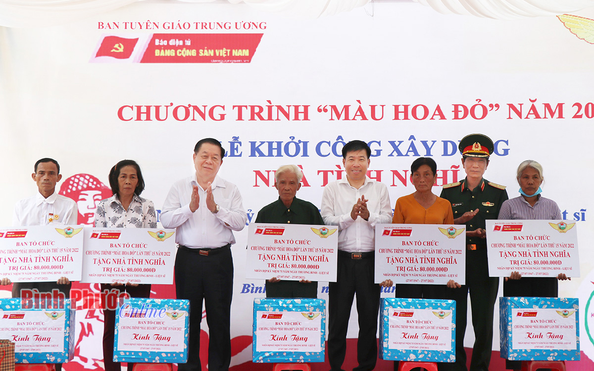 Chương trình “Màu hoa đỏ” diễn ra tại tỉnh Bình Phước với nhiều hoạt động. Trong đó có sự kiện trao biểu trưng và khởi công xây dựng 5 căn nhà tình nghĩa cho các gia đình chính sách: Nguyễn Thị Tươi, xã Thanh Hòa; Trương Ngọc Huân, xã Tân Tiến; Bùi Thị Mum, thị trấn Thanh Bình của huyện Bù Đốp và các hộ Phạm Thị Na, Thị Soóc ở xã Lộc Thành, huyện Lộc Ninh. Mỗi căn nhà trị giá 80 triệu đồng do Ban Tuyên giáo Trung ương, Báo điện tử Đảng Cộng sản Việt Nam, Binh đoàn 16 hỗ trợ kinh phí xây dựng.