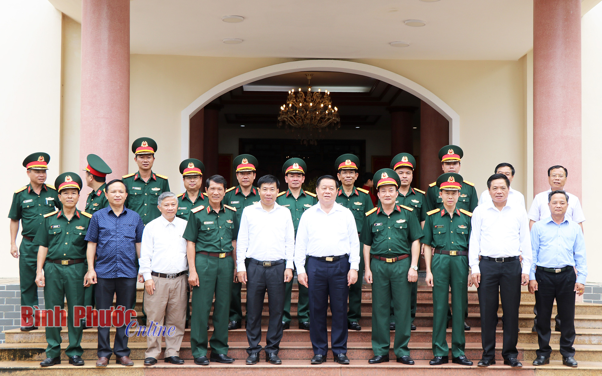 Đoàn công tác của Ban Tuyên giáo Trung ương, lãnh đạo tỉnh Bình Phước chụp hình lưu niệm Đảng ủy, Bộ tư lệnh Binh đoàn 16