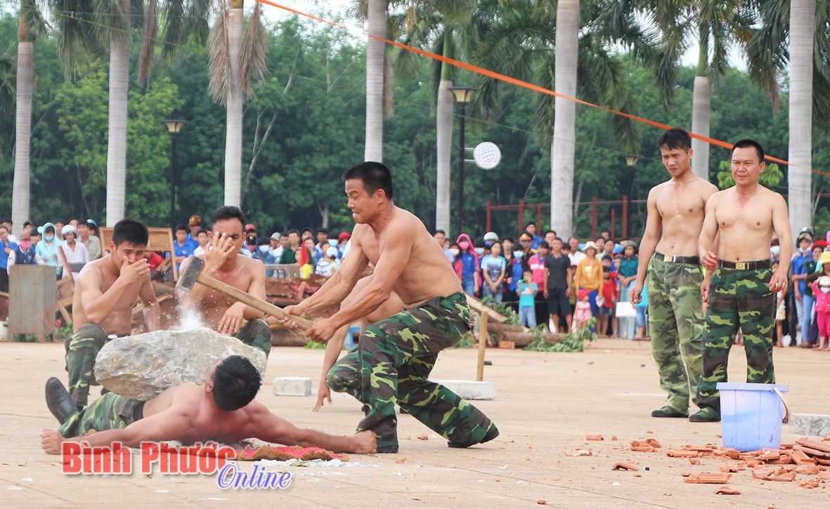 Chiến sĩ bộ đội biên phòng biểu diễn bài khí công
