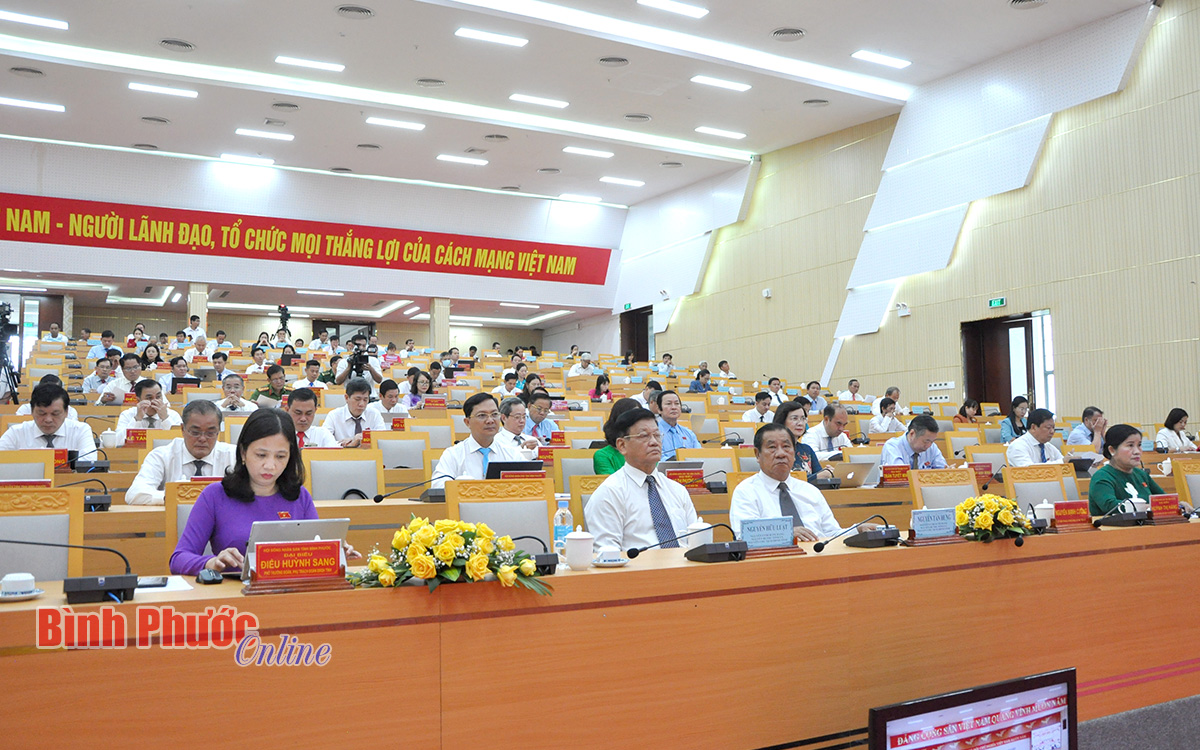 Phó bí thư Thường trực Tỉnh ủy, Chủ tịch HĐND tỉnh Huỳnh Thị Hằng; Ủy viên Ban Thường vụ Tỉnh ủy, Phó chủ tịch HĐND tỉnh Lê Hoàng Lâm và Tỉnh ủy viên, Phó chủ tịch HĐND tỉnh Huỳnh Hữu Thiết điều hành kỳ họp.