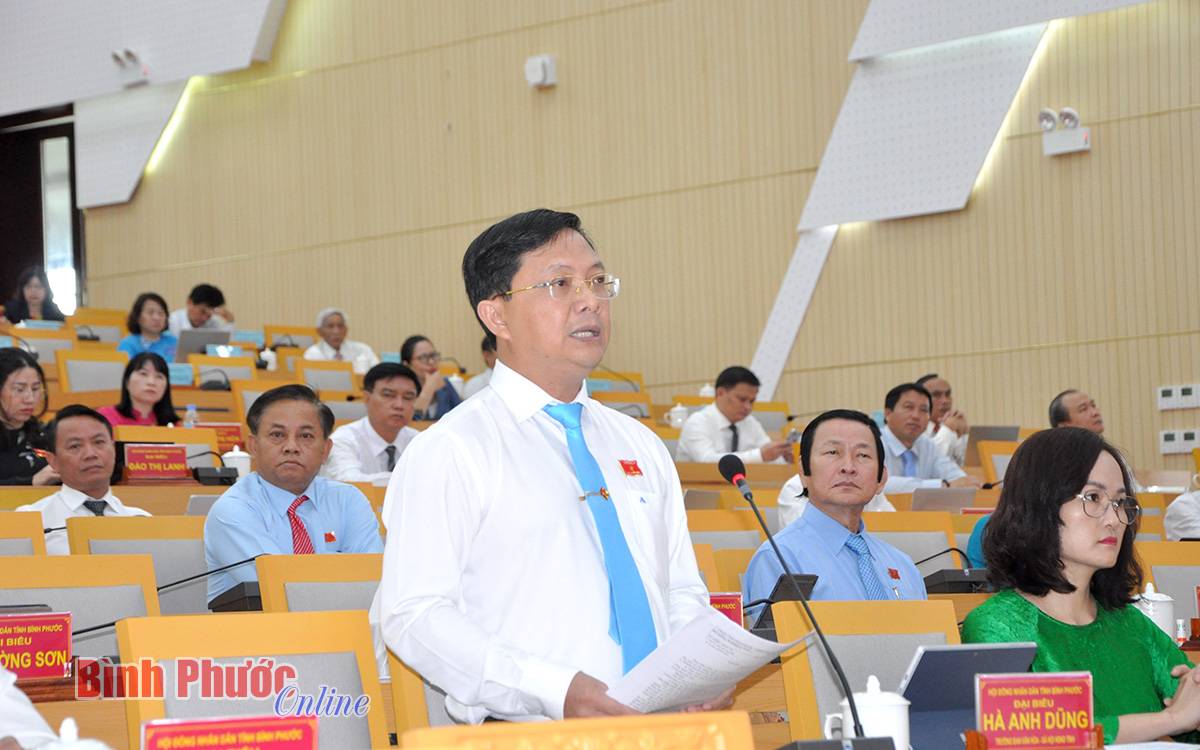 Đại biểu Hà Anh Dũng, Ủy viên Ban Thường vụ Tỉnh ủy, Bí thư Thành ủy Đồng Xoài chất vấn Giám đốc Sở Nông nghiệp và Phát triển nông thôn Nguyễn Thanh Bình liên quan đến việc quản lý hành lang sông, suối, ao, hồ, đất trong hành lang an toàn…