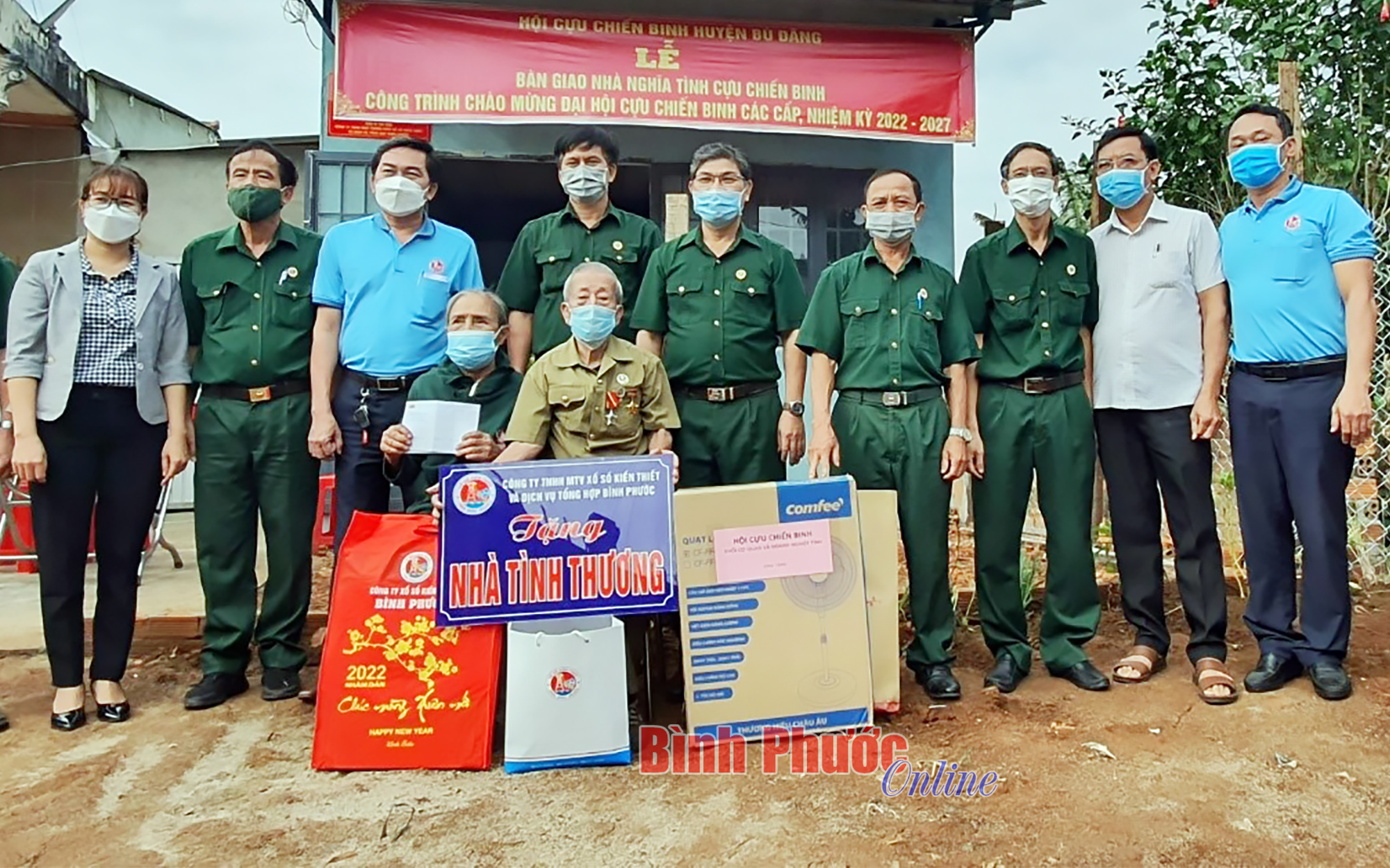 Ông Bùi Văn Thiêm, Trưởng ban Tuyên giáo Đảng ủy, Chủ tịch Hội CCB Khối Cơ quan và Doanh nghiệp tỉnh cho biết: “Trong những năm qua, hội đã kết nối với các doanh nghiệp, mạnh thường quân và vận động cán bộ, hội viên CCB đóng góp để xây dựng 7 căn nhà Nghĩa tình cựu chiến binh cho hội viên nghèo tại các huyện Bù Đăng, Bù Đốp, Bù Gia Mập và Hớn Quản trị giá 520 triệu đồng. Ủng hộ các loại quỹ 450 triệu đồng. Nhân dịp lễ, tết, hội vận động nhiều phần quà trao tặng các hội viên nghèo, gia đình chính sách hoàn cảnh khó khăn...”.