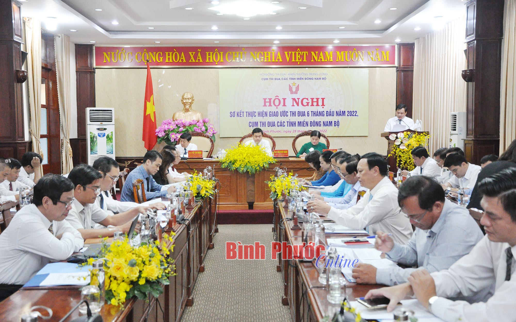 Trưởng ban Thi đua - Khen thưởng Trung ương Phạm Huy Giang; Chủ tịch UBND tỉnh Bình Dương, Cụm trưởng Cụm thi đua các tỉnh miền Đông Nam Bộ Võ Văn Minh; Phó bí thư Tỉnh ủy, Chủ tịch UBND tỉnh Bình Phước, Cụm phó Cụm thi đua các tỉnh miền Đông Nam Bộ Trần Tuệ Hiền chủ trì hội nghị.