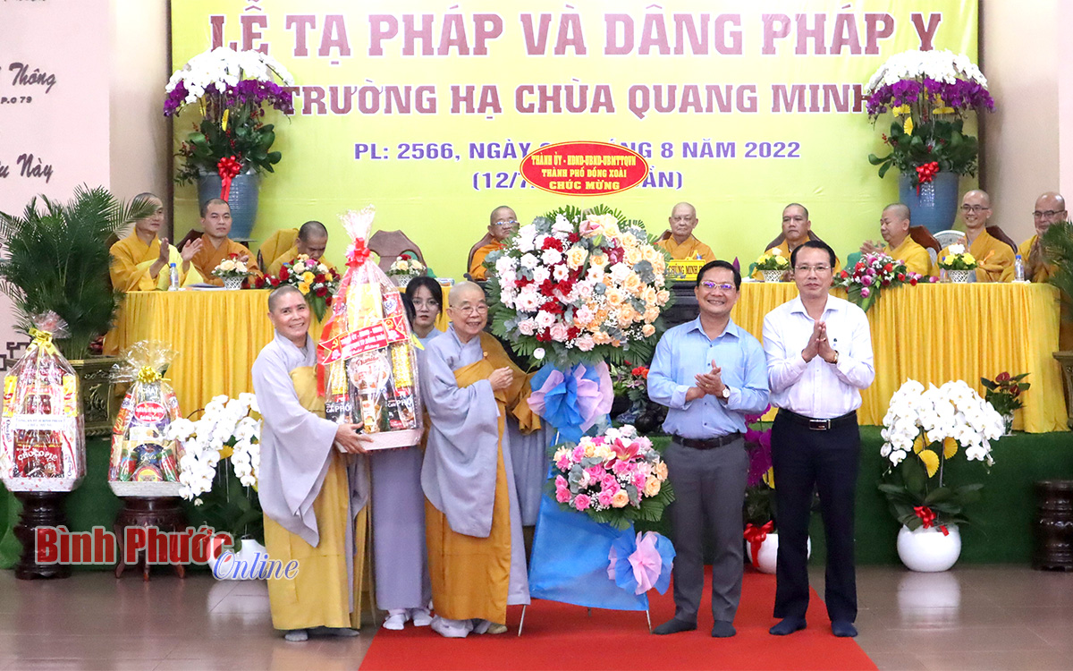 Trước đó, Ủy viên Ban Thường vụ Tỉnh ủy, Bí thư Thành ủy Đồng Xoài cùng lãnh đạo thành phố đã đến thăm, tặng hoa chúc mừng Ban trị sự Giáo hội Phật giáo Việt Nam tỉnh nhân dịp lễ Vu lan năm 2022.