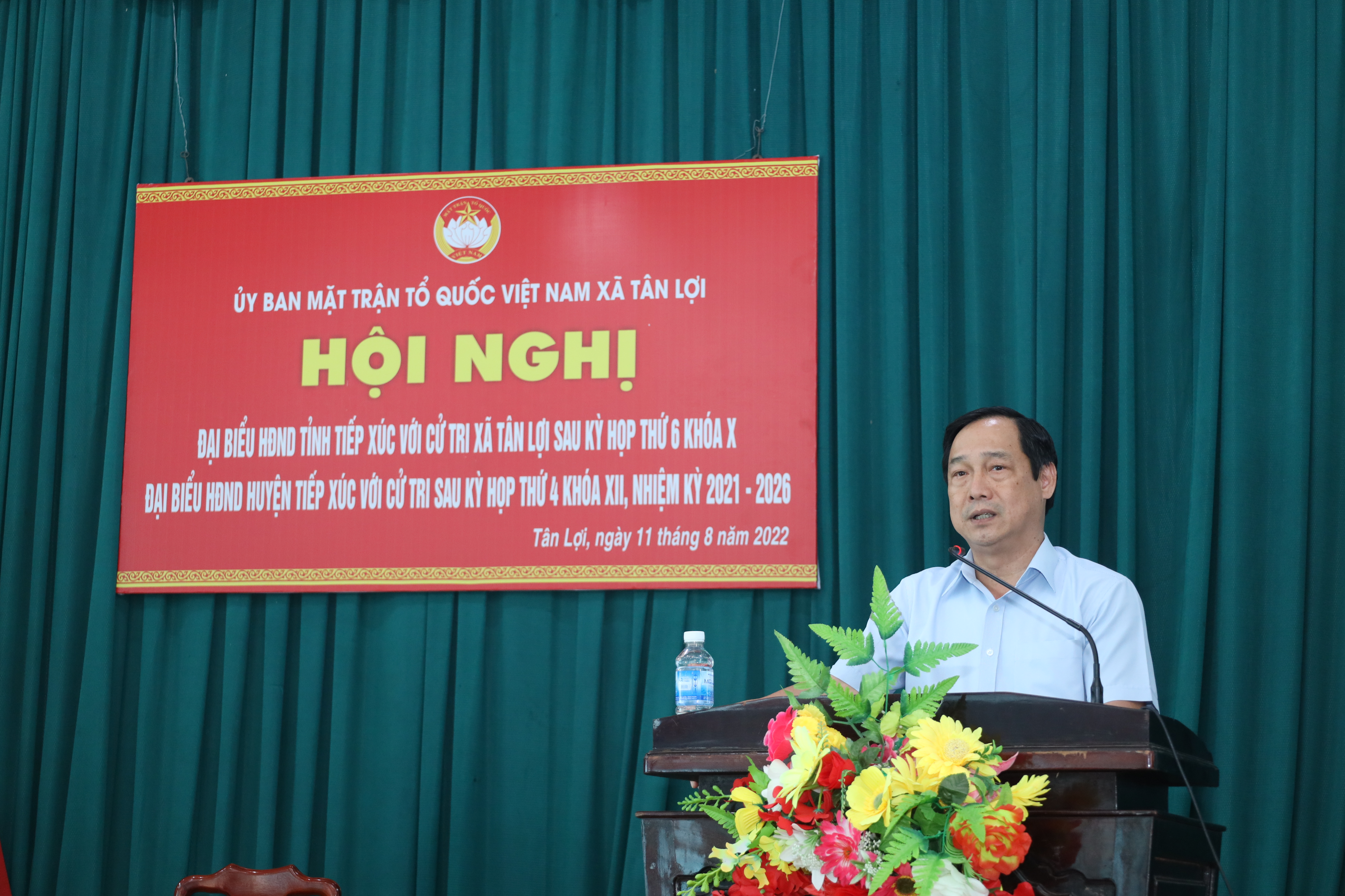 Cử tri xã Tân Lợi đã có 9 lượt ý kiến, kiến nghị xoay quanh các vấn đề như: Đường giao thông trên địa bàn xã xuống cấp sau những cơn mưa vừa qua, cử tri mong muốn sẽ đầu tư hoàn chỉnh và có cống thoát nước hợp lý. Năm 2022, việc triển khai xây dựng đường bê tông xi măng quá chậm, dù các khu dân cư đã thu đủ tiền để đối ứng. Hệ thống điện hạ thế của xã bị xuống cấp, không đáp ứng đủ nhu cầu sử dụng của người dân. Đến nay, nhà văn hóa ở một số khu dân cư chưa có, phải sinh hoạt nhờ. Việc san lấp mặt bằng, khai thác đất sỏi phún chưa được quản lý chặt chẽ giữa các đơn vị chức năng. Cử tri mong muốn cần xem xét, đánh giá lại tác động môi trường ở những lô cao su sau khi thanh lý.
