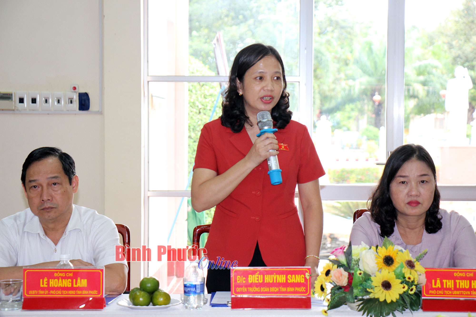 Tỉnh ủy viên, Phó trưởng đoàn chuyên trách, phụ trách Đoàn đại biểu Quốc hội tỉnh Điểu Huỳnh Sang phát biểu tại buổi làm việc