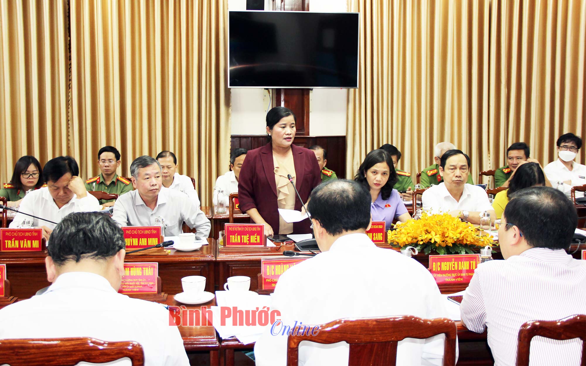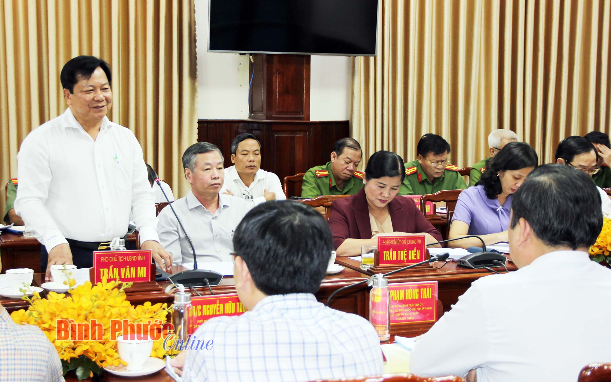 Tại buổi làm việc, Chủ tịch UBND tỉnh Trần Tuệ Hiền đã bày tỏ sự vui mừng, phấn khởi khi Bình Phước được đoàn chọn làm đơn vị khảo sát; đồng thời báo cáo khái quát tình hình kinh tế, văn hóa, xã hội cũng như tình hình thực hiện công tác phòng, chống tội phạm, vi phạm pháp luật và công tác phòng, chống tham nhũng trên địa bàn tỉnh Bình Phước.