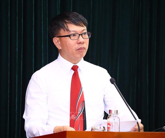 PGS,TS Đinh Ngọc Giang, Vụ trưởng Vụ Quản lý Khoa học, Học viện Chính trị Quốc gia Hồ Chí Minh báo cáo đề dẫn hội thảo. Ảnh: Văn Điệp/TTXVN