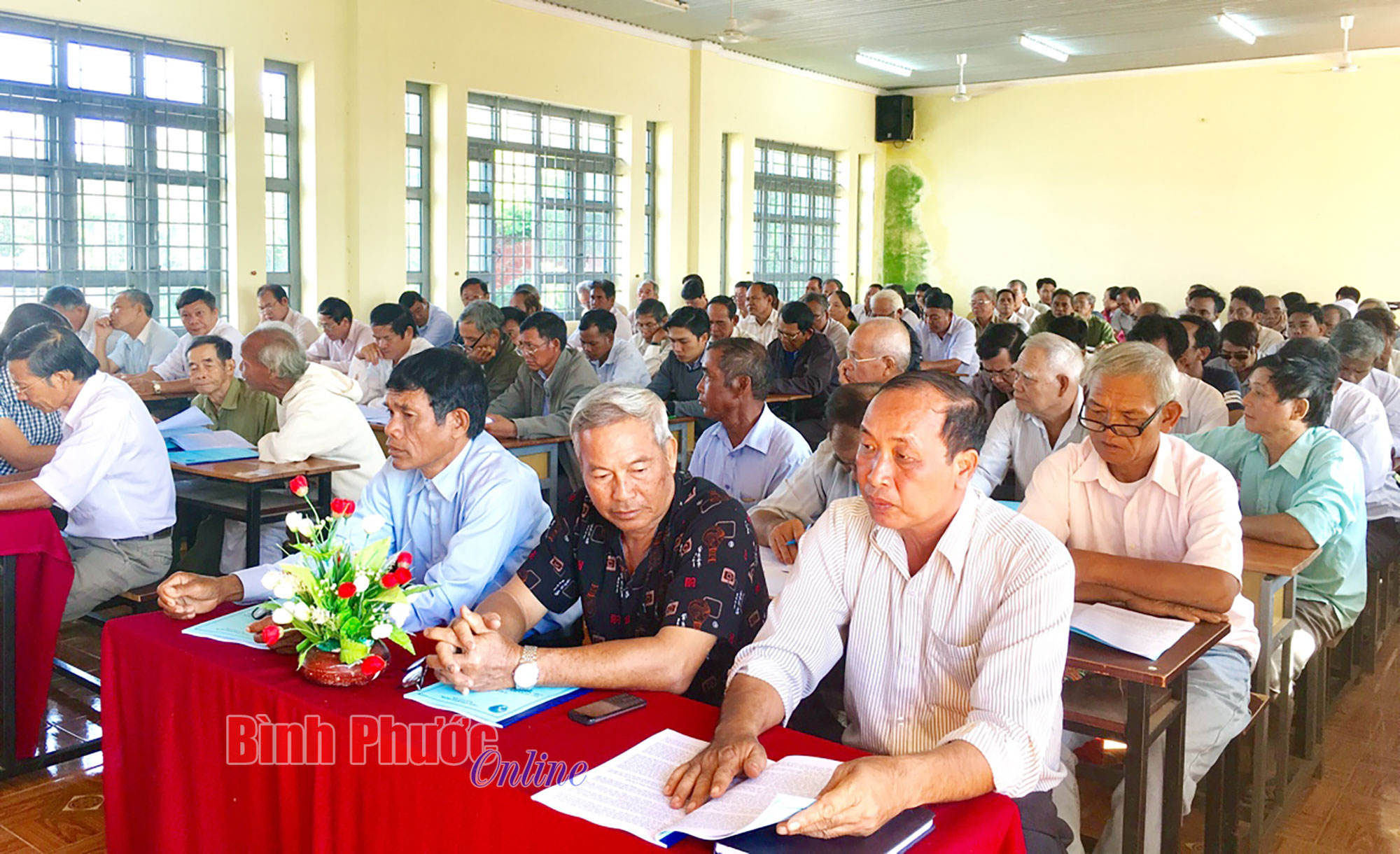 Người có uy tín, già làng tiêu biểu xuất sắc trong vùng đồng bào dân tộc thiểu số tỉnh Bình Phước tham gia tập huấn, bồi dưỡng do Ban Dân tộc tỉnh phối hợp tổ chức. Ảnh: Lâm Á Rịa