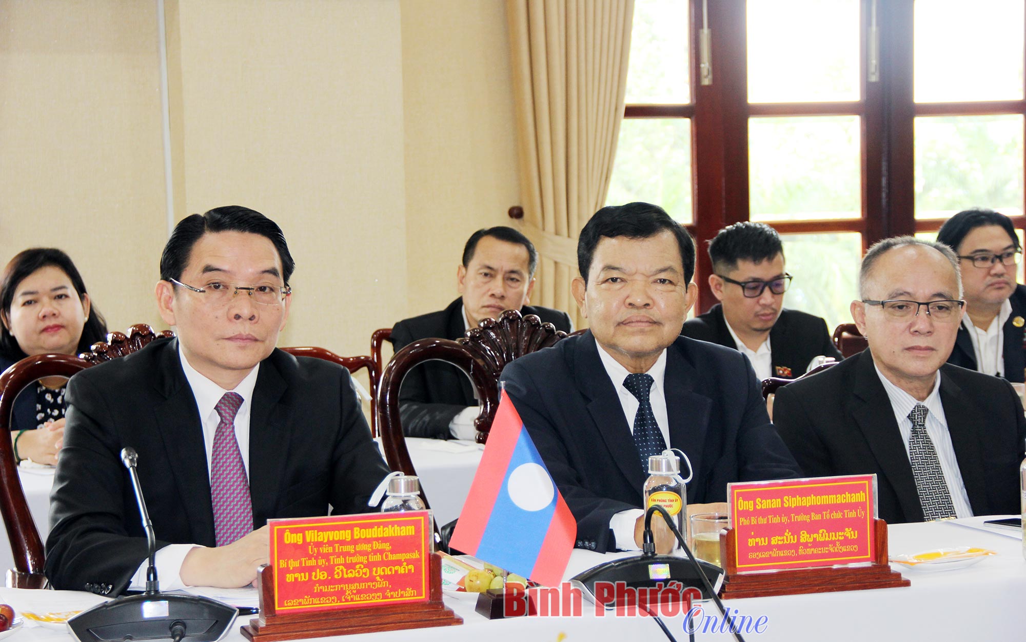 Chương trình làm việc giữa lãnh đạo tỉnh Bình Phước và Đoàn đại biểu cấp cao tỉnh Champasak diễn ra trong không khí trang trọng, ấm áp và thắm tình đoàn kết, hữu nghị.