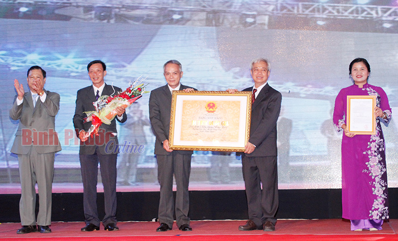 Được sự ủy quyền của Bộ trưởng Bộ VH-TT&DL, Chủ tịch UBND tỉnh Nguyễn Văn Trăm trao quyết định và bằng công nhận địa điểm chiến thắng Đồng Xoài là di tích quốc gia