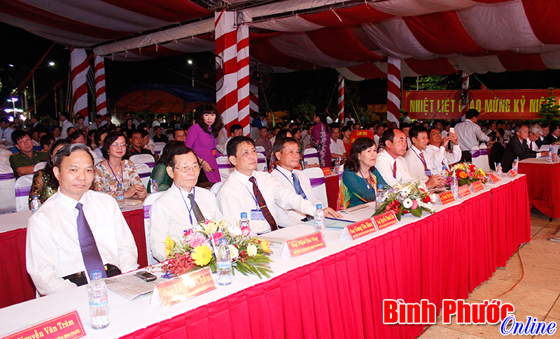 Phó bí thư Tỉnh ủy, Chủ tịch UBND tỉnh Nguyễn Văn Trăm; Phó bí thư Tỉnh ủy Lê Văn Châu; đại diện lãnh đạo Thường trực HĐND, UBND, UBMTTQ Việt Nam tỉnh và lãnh đạo một số sở, ngành, thị xã Đồng Xoài; các đồng chí nguyên là lãnh đạo tỉnh, thị xã Đồng Xoài, huyện Đồng Phú qua các thời kỳ; các Mẹ Việt Nam anh hùng, Anh hùng lực lượng vũ trang trên địa bàn thị xã cùng đông đảo cán bộ, chiến sĩ, thanh thiếu niên, học sinh và nhân dân thị xã Đồng Xoài tới dự lễ. Đặc biệt, tham dự lễ kỷ niệm còn có các cựu chiến binh là cán bộ, chiến sĩ Trung đoàn 2 - những người đã trực tiếp tham gia trận đánh đêm 9-6-1965 làm nên chiến thắng Đồng Xoài rực lửa chiến công.