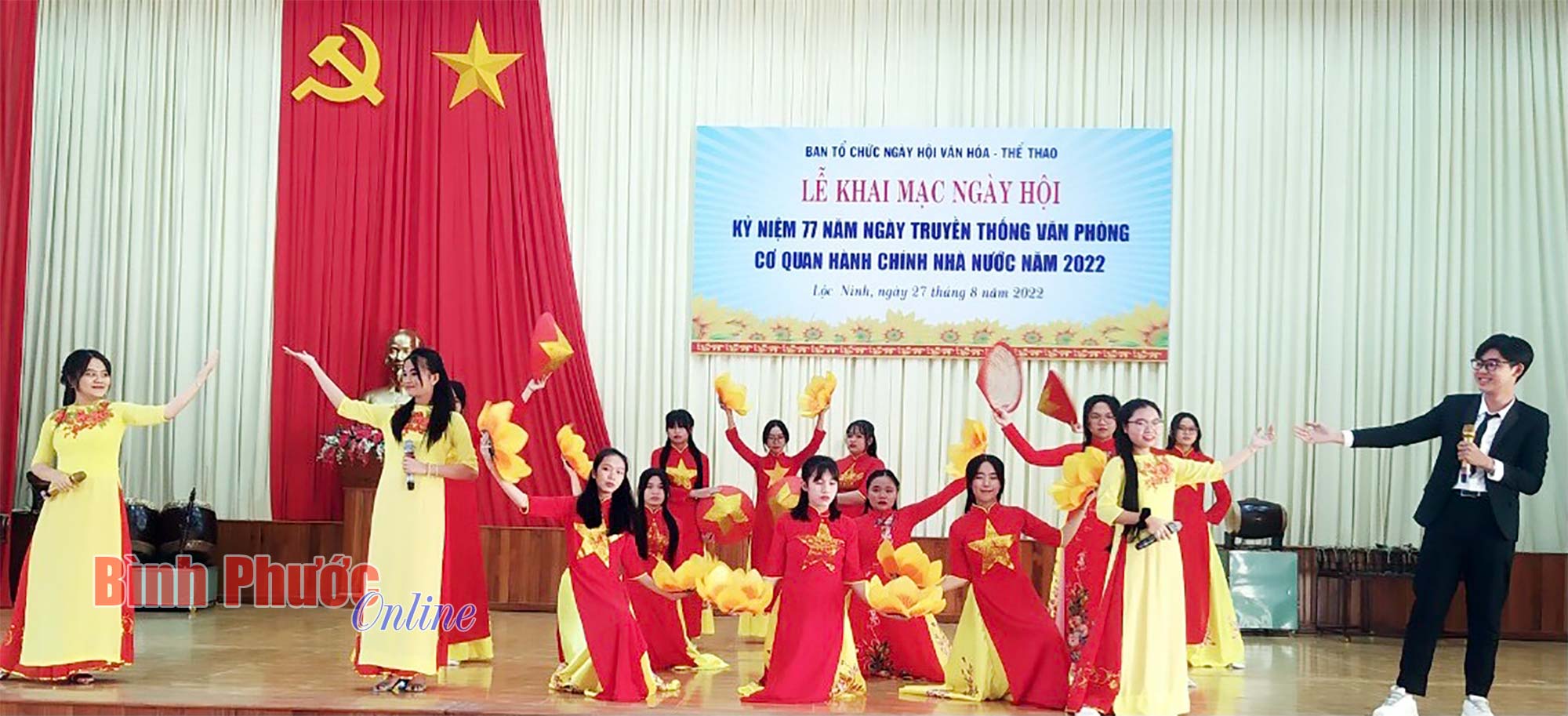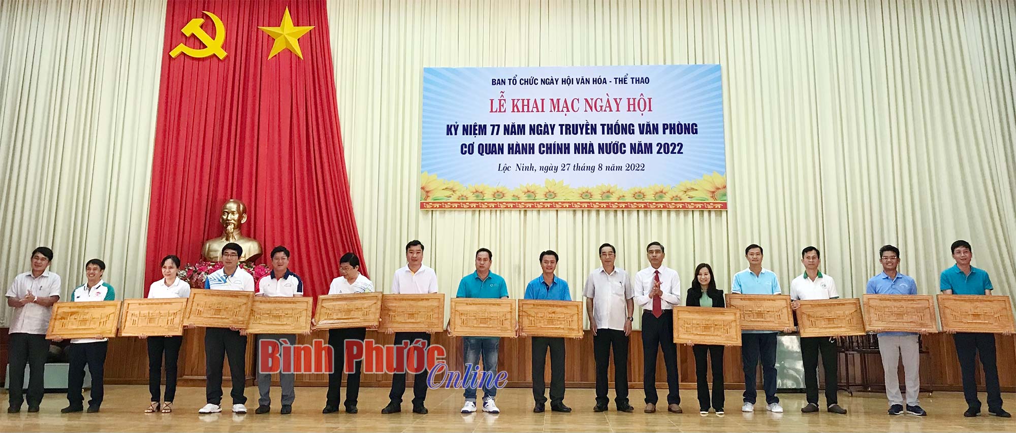 Tuyên dương 13 điển hình tiên tiến ngành văn phòng tỉnh Bình Phước năm 2022BPO - Nằm trong chương trình kỷ niệm 77 năm Ngày truyền thống văn phòng các cơ quan hành chính Nhà nước (28-8-1945 - 28-8-2022), chiều nay 27-8, Ban tổ chức Ngày Hội văn hóa - thể thao huyện Lộc Ninh tổ chức tuyên dương và trao giải ở các nội dung đã diễn ra thi đấu.