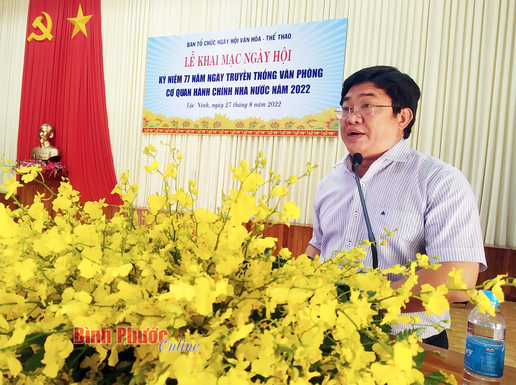 Phát biểu trong ngày hội, Chánh văn phòng UBND tỉnh Phạm Văn Trinh cho biết: Cách đây 77 năm, ngày 28-8-1945, Chủ tịch Hồ Chí Minh đã ra tuyên cáo trước quốc dân đồng bào và với toàn thế giới về việc thành lập Chính phủ lâm thời Việt Nam dân chủ cộng hòa. Đó cũng chính là ngày đánh dấu sự ra đời của một số cơ quan, đơn vị giúp việc cho chính quyền các cấp. Năm 2004, Thủ tướng Chính phủ đã ký Quyết định số 828/QĐ-TTg lấy ngày 28-8 hàng năm là Ngày truyền thống Văn phòng cơ quan hành chính nhà nước các cấp.