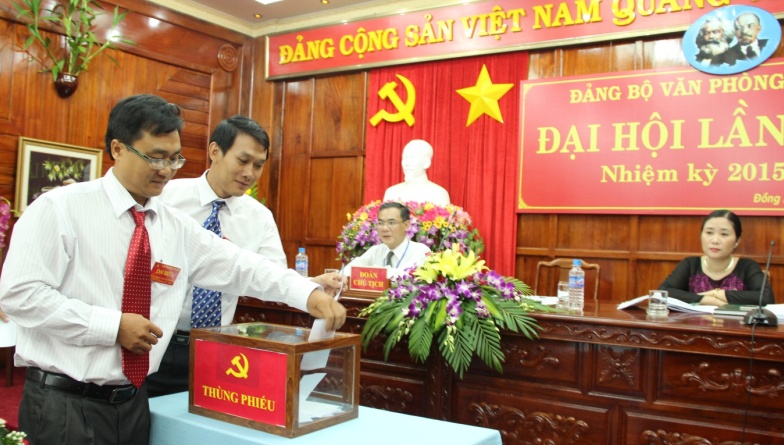 Các đảng viên bỏ phiếu bầu Ban chấp hành Đảng bộ nhiệm kỳ 2015-2020