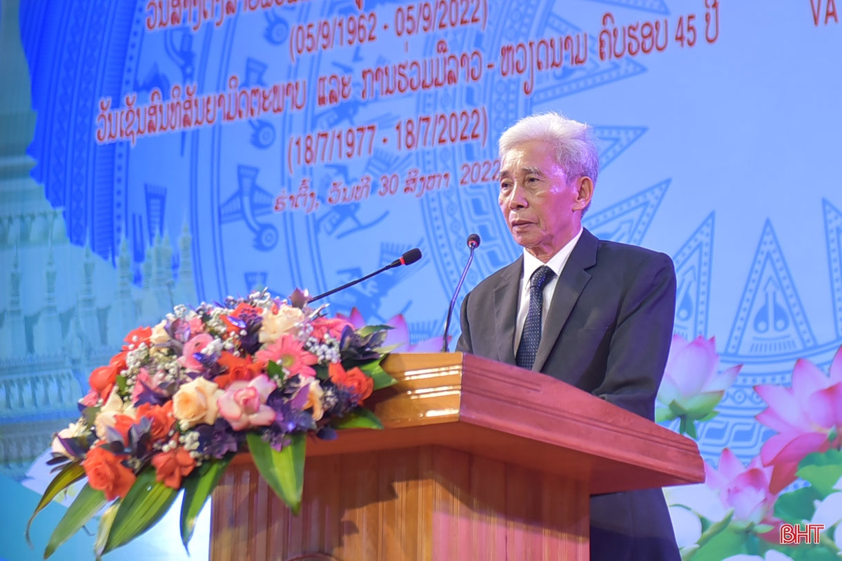 Phát biểu bế mạc lễ kỷ niệm, Phó Chủ tịch Thường trực UBND tỉnh Nguyễn Hồng Lĩnh khẳng định: Lễ kỷ niệm 60 năm ngày thiết lập quan hệ ngoại giao, 45 năm ngày ký Hiệp ước hữu nghị và Hợp tác Việt Nam - Lào đã thành công tốt đẹp. Đây là một trong những hoạt động có ý nghĩa quan trọng trong chuỗi các hoạt động kỷ niệm “Năm đoàn kết hữu nghị Việt Nam - Lào, Lào - Việt Nam 2022” của tỉnh Hà Tĩnh.